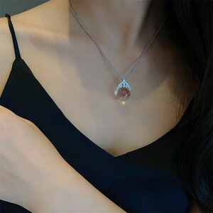 皇冠白水晶吊坠项链