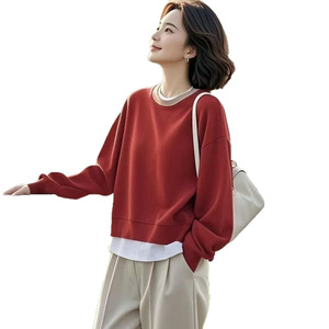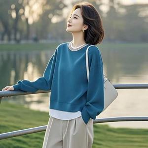 跨境2025年秋季新款百搭休闲宽松女士套头卫衣上衣批发直销