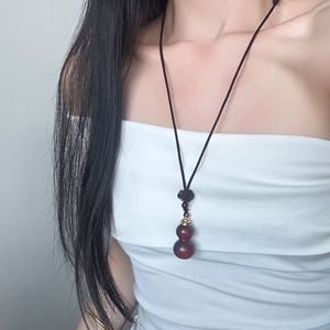 可打开空心葫芦竹节紫檀木项链黑檀木吊坠毛衣链木雕挂件饰品配饰
