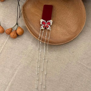 2025年初秋新中式红色金流苏发夹女发饰国风新娘侧边刘海夹头饰