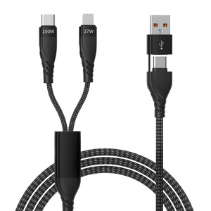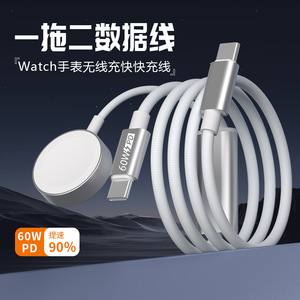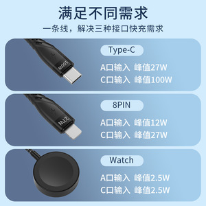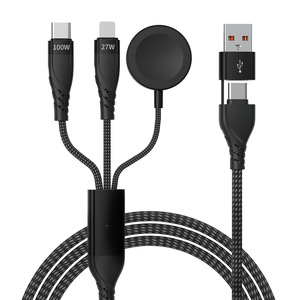 100W二拖三数据线适用苹果iWatch手表磁吸无线充五合一快充线5A