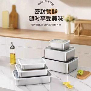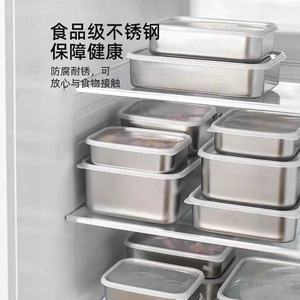 304不锈钢保鲜盒食品级密封盒带盖冰箱冷冻肉盒收纳盒便当盒饭盒