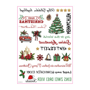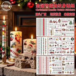 跨境新款圣诞节日派对复古纹身贴纸温馨氛围感蜡烛DIY装饰贴纸