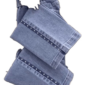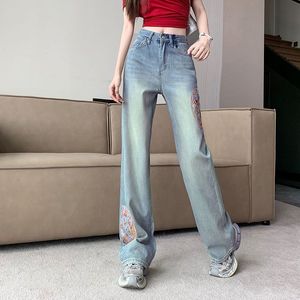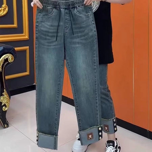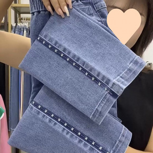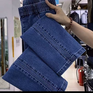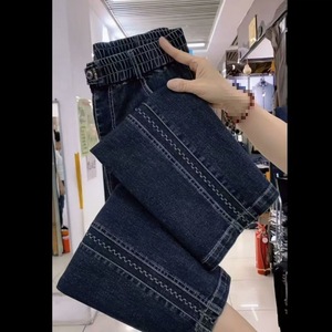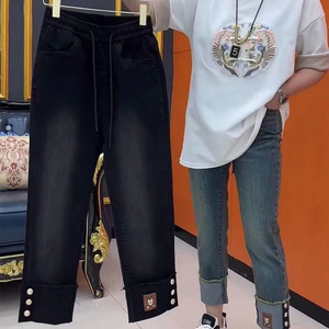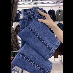 蓝色牛仔裤宽松直筒裤子女2025新款高腰显瘦九分平条口松紧腰柔软