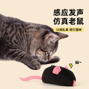 猫咪玩具仿真叫叫鼠发声小老鼠毛绒猫咪自嗨解闷磨牙玩具