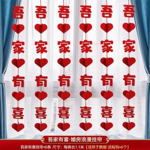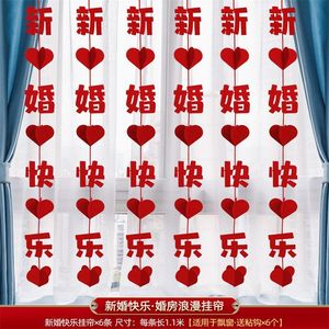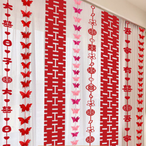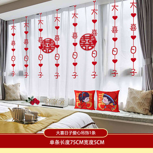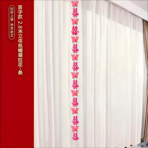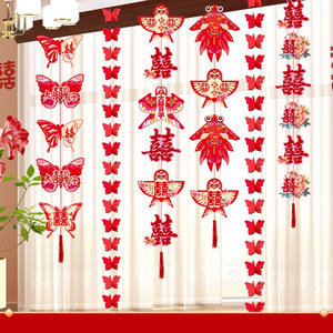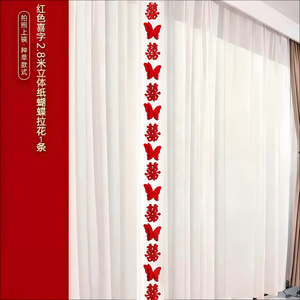 结婚礼长条喜字贴窗帘挂件婚房布置套装新房卧室客厅装饰蝴蝶拉花
