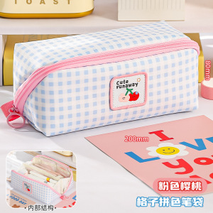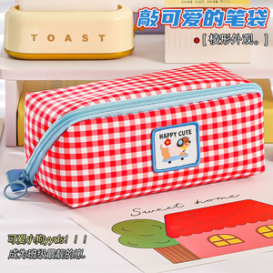 2025年新款高颜值多巴胺撞色棱镜格子笔袋学生ins风大容量笔袋