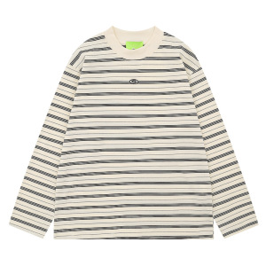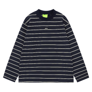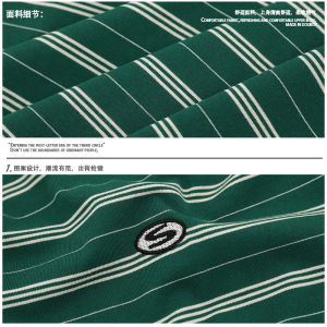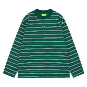 韩版简约随性穿搭绿色撞色条纹休闲复古宽松长袖T恤男女秋季上衣
