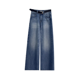 [简裁]T-PLATFORM 复古蓝色牛仔裤秋季韩系显瘦遮胯阔腿裤1059