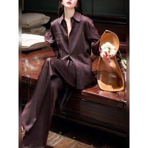 夏季松弛感穿搭盐系通勤套装宽松慵懒咖啡色衬衫阔腿裤两件套装女