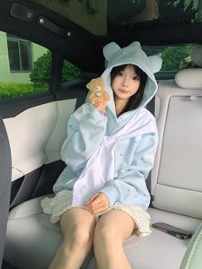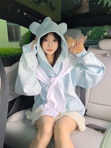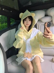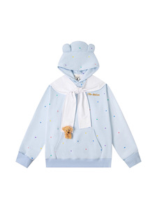 甜美可爱波点可拆卸小熊连帽宽松卫衣秋软萌披肩帽衫上衣百搭宽松