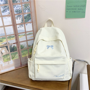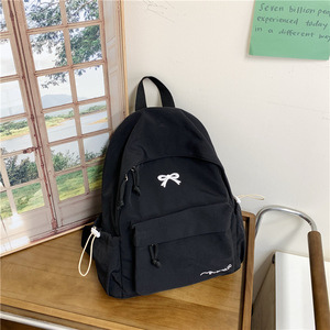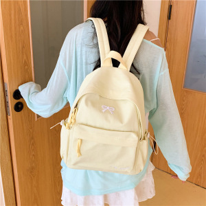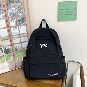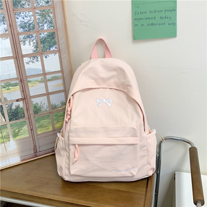 大学生双肩包初中生电脑包韩版简约少女蝴蝶结书包大容量背包女