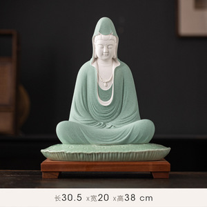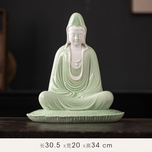 德化陶瓷莲花自在观音菩萨摆件禅意工艺品家居客厅供奉玄关装饰品