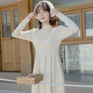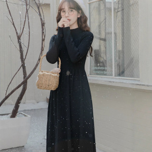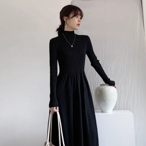 配大衣打底内搭黑色连衣裙女秋冬季2025新款法式针织毛衣裙子长裙