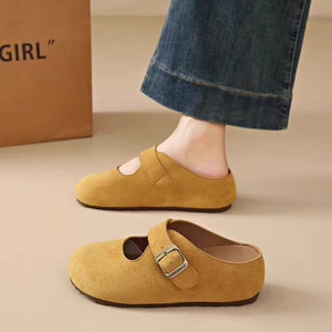 Qiyor勃肯半拖鞋女2025夏季新款厚底小个子内增高懒人博肯包头拖