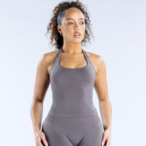 亚马逊跨境DF同款无缝健身瑜伽背心平领挂脖全消光运动背心带胸垫