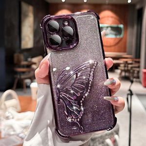 立体镶钻蝴蝶支架适用iPhone17Pro手机壳苹果16电镀TPU气囊防摔15