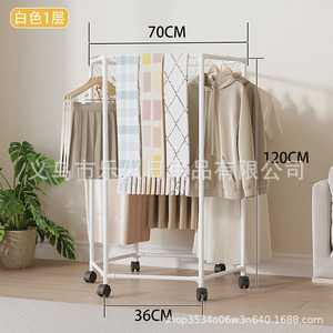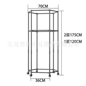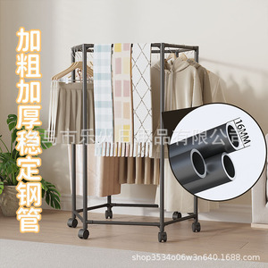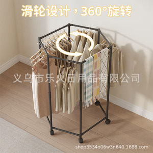 跨境多功能六边形带轮旋转晾衣架双层嗮衣架卧室挂衣架衣帽收纳架