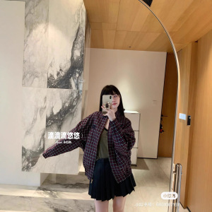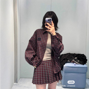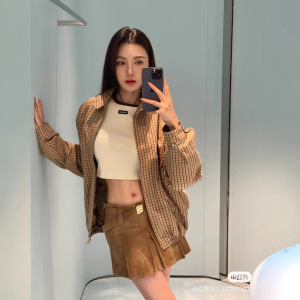 mm25秋季新款韩系学院风字母贴布绣格子拉链夹克外套
