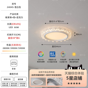 【人气单品】雪白色【圆形44cm】三色变光版 (全光谱-CRI≥97)
