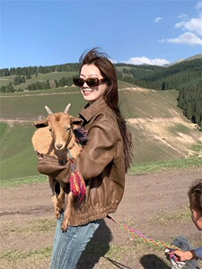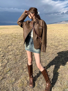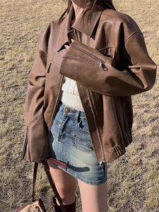 棕色皮衣外套女2025春秋新款美拉德美式复古pu皮小个子机车服夹克