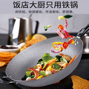 家用老式生铁锅电磁炉燃气灶适用铸铁炒锅无涂层炒菜锅不粘平底锅