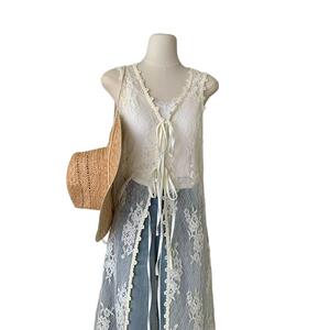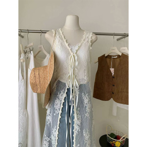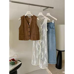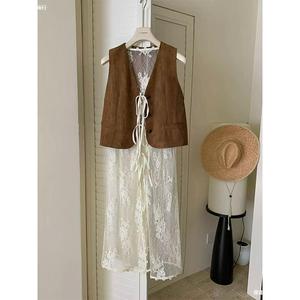 白色蕾丝棉连衣裙修身长款马甲式裙子叠穿神器早秋新款女均码拼接