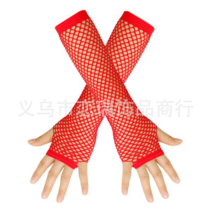 红色短款渔网手套