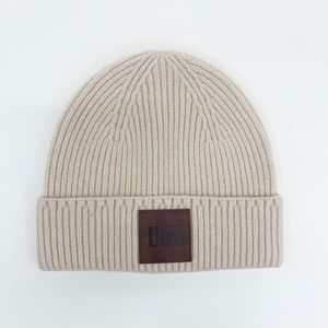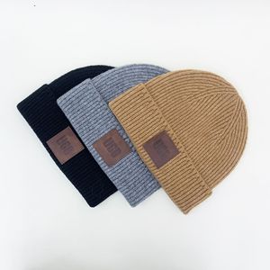 字母皮标宽松版显脸小针织帽女保暖毛线帽男新款冷帽男女