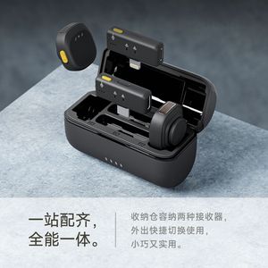 跨境爆款私模磁吸纽扣无线领夹麦克风直播二拖二双接收器苹果安卓