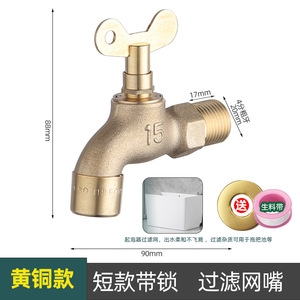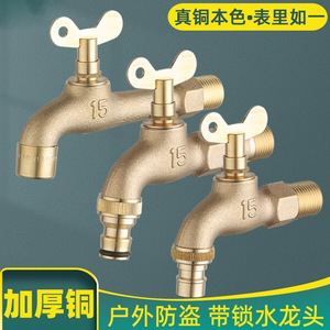全铜加厚带锁水龙头室户外防盗偷水嘴洗衣机快开钥匙单冷家用4分
