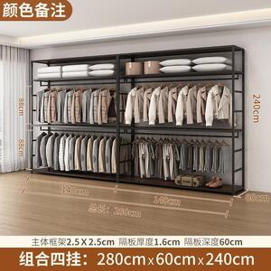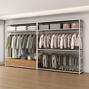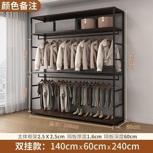 卧室落地挂衣帽架组装开放式衣柜铁艺双层金属框架衣帽间自制架子