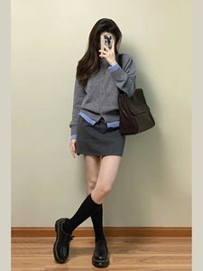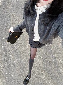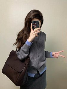 韩版hiphop灰色软糯针织衫女春秋高级感气质休闲百搭纽扣开衫外套