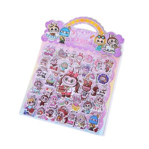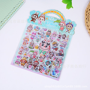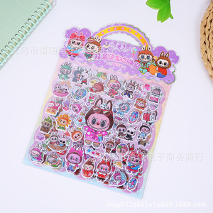 跨境热销卡通LABUBU双层烫金立体贴纸精灵天团3D立体泡泡贴粘贴画