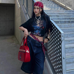 复古撞色辣妹红条纹领带丝巾百搭装饰小众设计感配饰高级感女新品