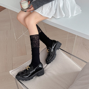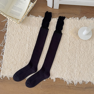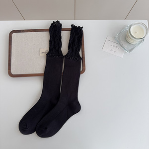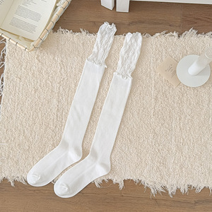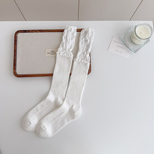 芭蕾风袜子女甜美蕾丝拼接中筒袜时尚简约花边堆堆袜女洛丽塔袜子