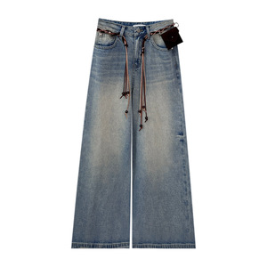 [简裁]T-PLATFORM 遮胯显瘦阔腿牛仔裤秋季通勤垂坠感裤子1055