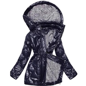 欧美跨境秋冬抽绳绗缝连帽豹纹印花女装保暖羽绒棉服外套MG613