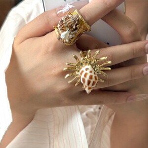 波西米亚海洋风金属寄居蟹海螺贝壳手工叠戴指环夸张个性欧美戒指