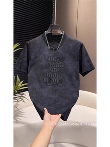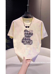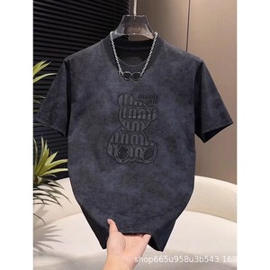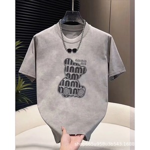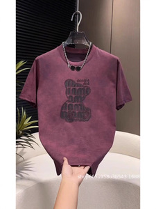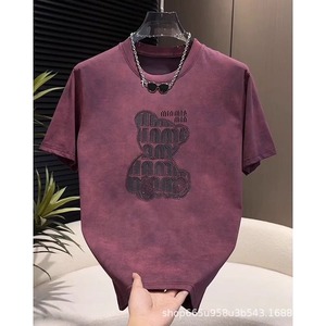 男士短袖t恤简约复古夏季小熊烫钻扎染圆领简约时尚百搭休闲修身