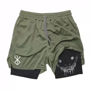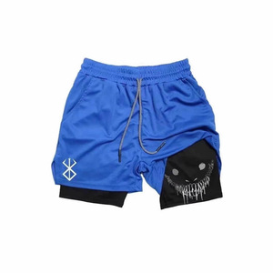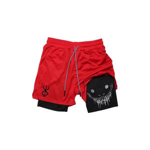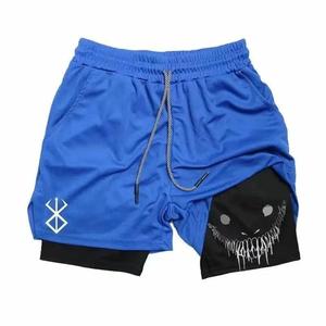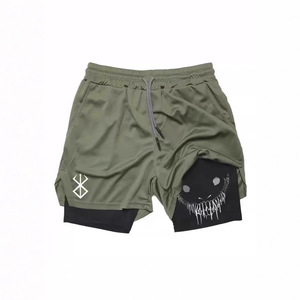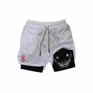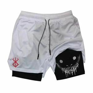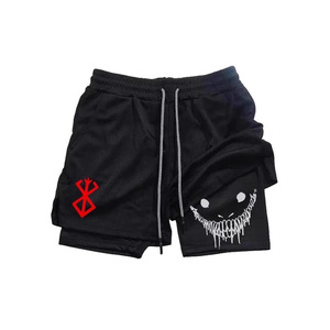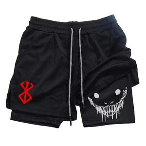跨境夏季新款健身印花暗黑动漫双层休闲沙滩裤运动男士短裤