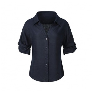 Wuus【亚麻组】100%高支数亚麻 黄色中袖衬衫女五分袖衬衣开衫