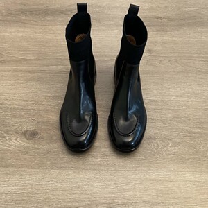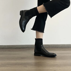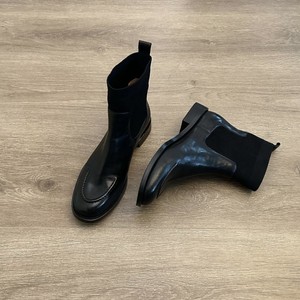法式拼接织物中跟粗跟短靴女2025秋冬新款方头弹力瘦瘦靴女靴