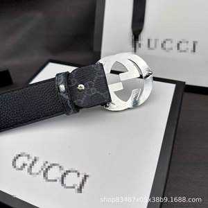 新款韩版男士皮带双G平滑扣真皮腰带字母时尚潮流百搭裤带厂家直