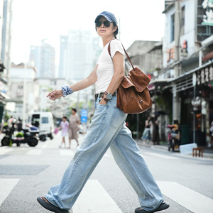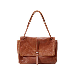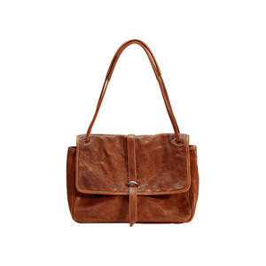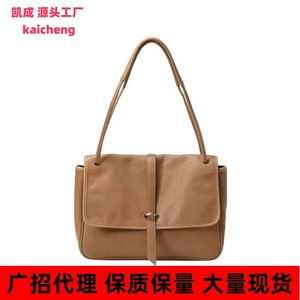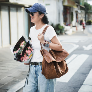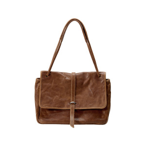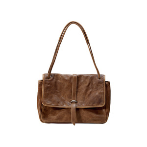 裘真001洗水邮差包女复古大容量通勤斜挎托特包小众植鞣牛皮包包