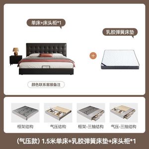 【纳帕皮】床+床头柜*1+乳胶弹簧床垫
