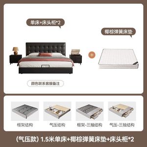 【纳帕皮】床+床头柜*2+护脊椰棕弹簧床垫.