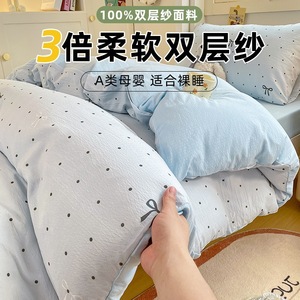 a类母婴ins奶油风双层纱四件套床单被套学院风学生宿舍床笠三件套