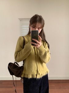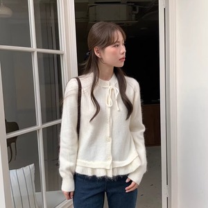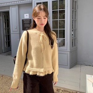 韩系抽绳领木耳边下摆针织开衫女2025早秋新款软糯高级感毛衣外套