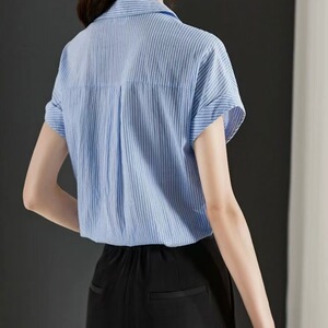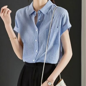 棉质条纹短袖衬衫上衣女设计感夏季新款宽松遮肚时尚衬衣